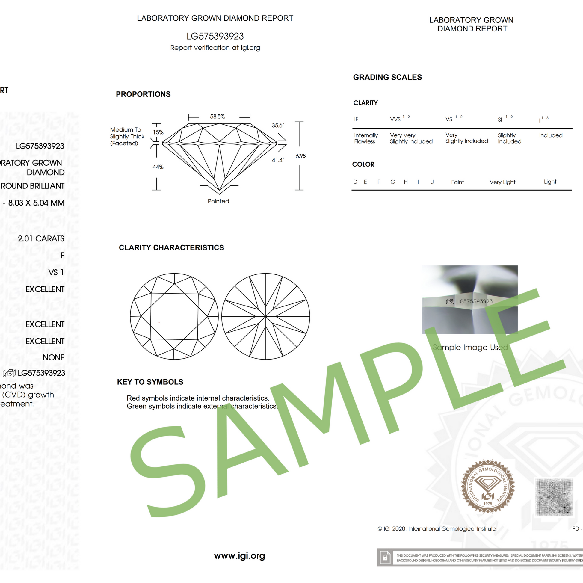 こちらのダイヤモンドにはIGI(国際宝石学会)が発行する鑑定書が付きます。